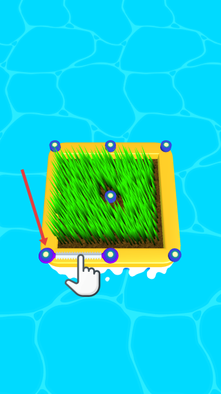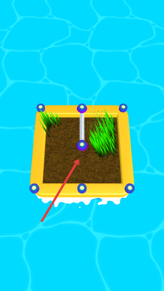 1、指尖路径点击操作:单指点击场景中的柱子形成割草连线,双击柱子取消连线,滑动屏幕旋转视角规划全局路线,在“格子草坪”关卡中,需点击四角柱子形成正方形回路。