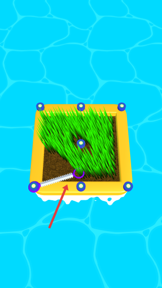 2、切割操作:拖动锯形工具在草坪区域,按路径切割青草。