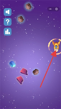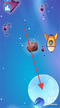 3、来到含星球场景,操作火箭,跟随箭头,躲避陨石,冲向带有数字“717”的星球,探索目标。