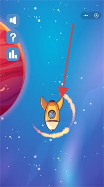 2、进入蓝色宇宙场景,控制火箭,沿箭头方向,环绕行星飞行,避开障碍,完成轨道挑战。
