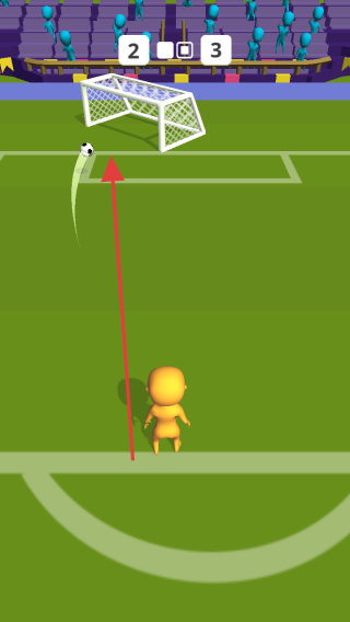 3、持续尝试,把握好踢球时机和角度,在比分【2-3】时,努力进球,不断挑战自我,争取赢得比赛胜利,刷新比分。