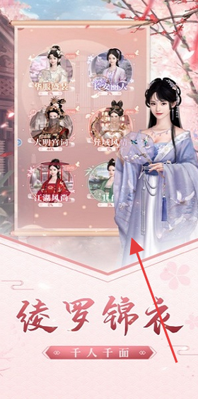 2、进入“绫罗锦衣”,选风格套装,搭配服饰,塑造独特外观形象。