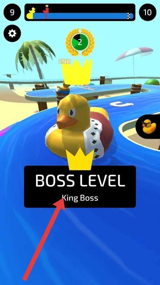 3、进入“BOSS-LEVEL”,挑战“Kin-Boss”,在海滩赛道,全力冲刺,击败Boss鸭,赢取奖励。