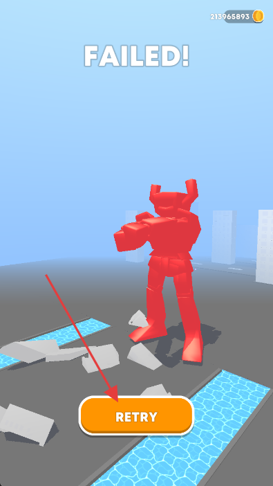 3、关卡失败后,点击橙色【RETRY】按钮,重新挑战【LEVEL2】。