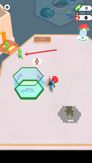 3、互动推进:放置六边形装置后,吸引绿色小人前来,推进场景互动。