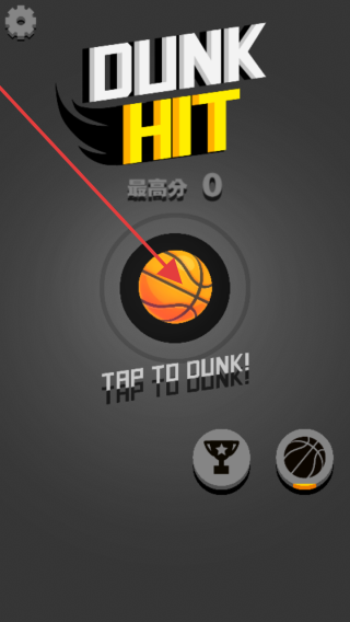 1、进入《DUNKHIT》游戏界面看到【TAPTODUNK!】提示点击屏幕即可开始灌篮游戏。