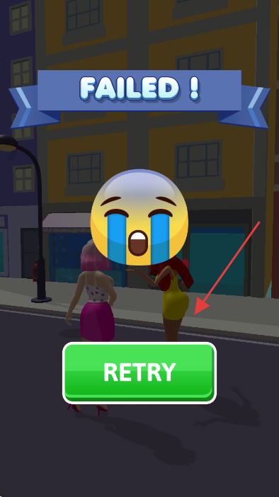3、关卡失败后,点击绿色【RETRY】按钮,重新挑战【LEVEL1】。