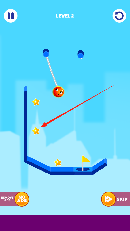1、观察场景布局与绳索分布,优先规划最优路线,通过精准控制切割时机与顺序,巧妙避开障碍物,确保小球顺利入洞。
