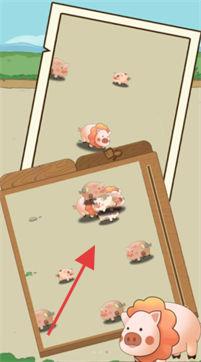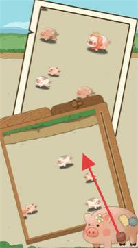 2、进入游戏后,观察上下层小猪位置,拖动使同类型汇聚,触发合并。