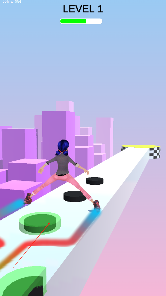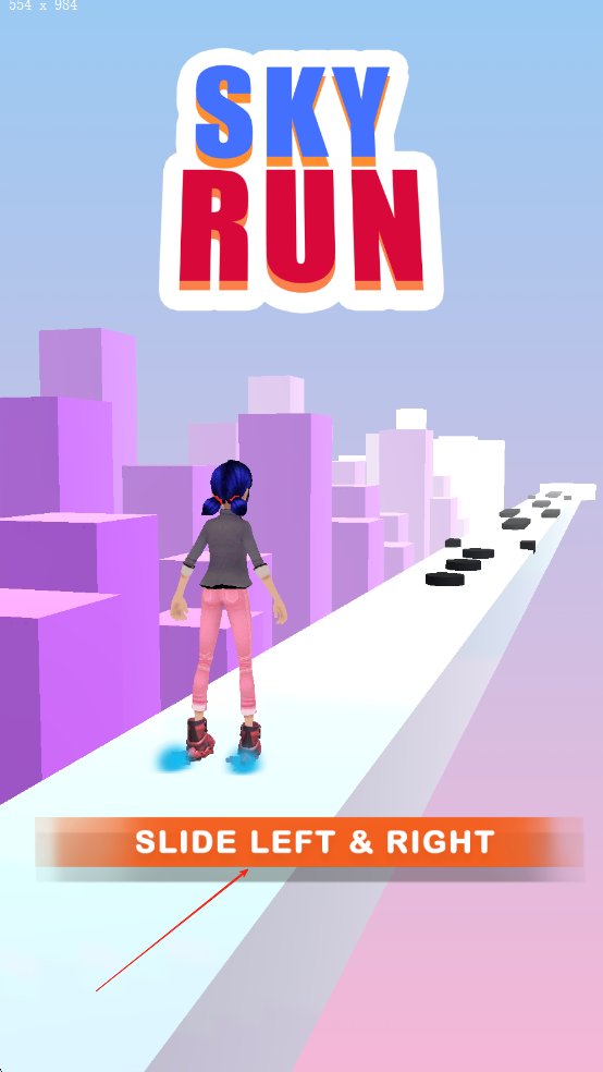 1、进入游戏后在主界面选择“云端赛道”,点击屏幕开始游戏,滑动手指控制少女左右移动,遇到红色障碍时向上滑动跳跃,蓝色区域需向下滑动俯身躲避。