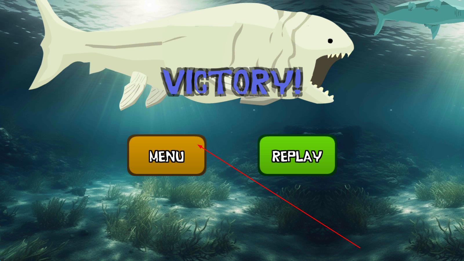 1、进入游戏后,操控初始小鱼在海底游动,寻找比自身体积小的鱼类,点击屏幕或滑动操纵杆靠近目标完成首次吞噬。