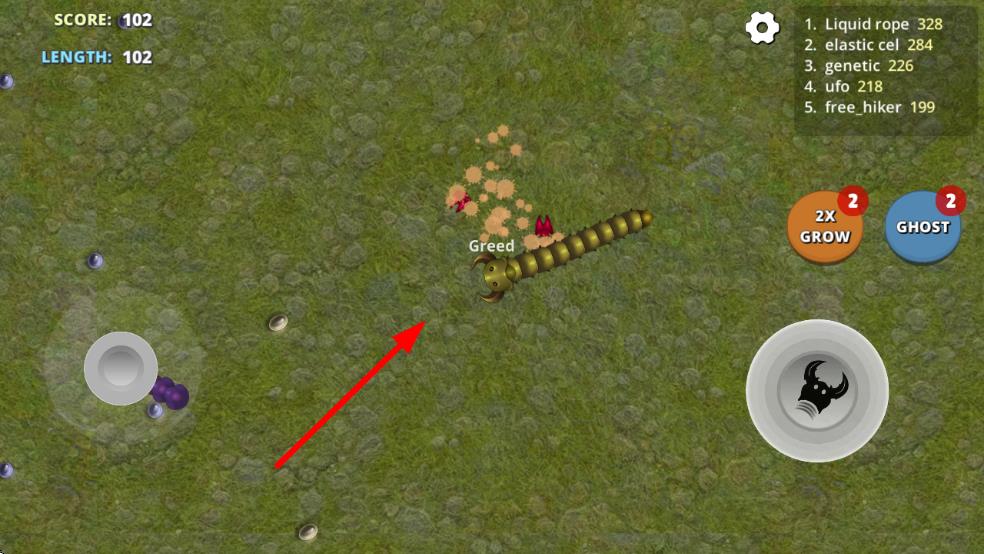 2、积累能量后解锁加速、分身等技能,联机模式中可长按技能键对其他玩家的蠕虫释放整蛊效果,如短暂禁锢或方向反转。