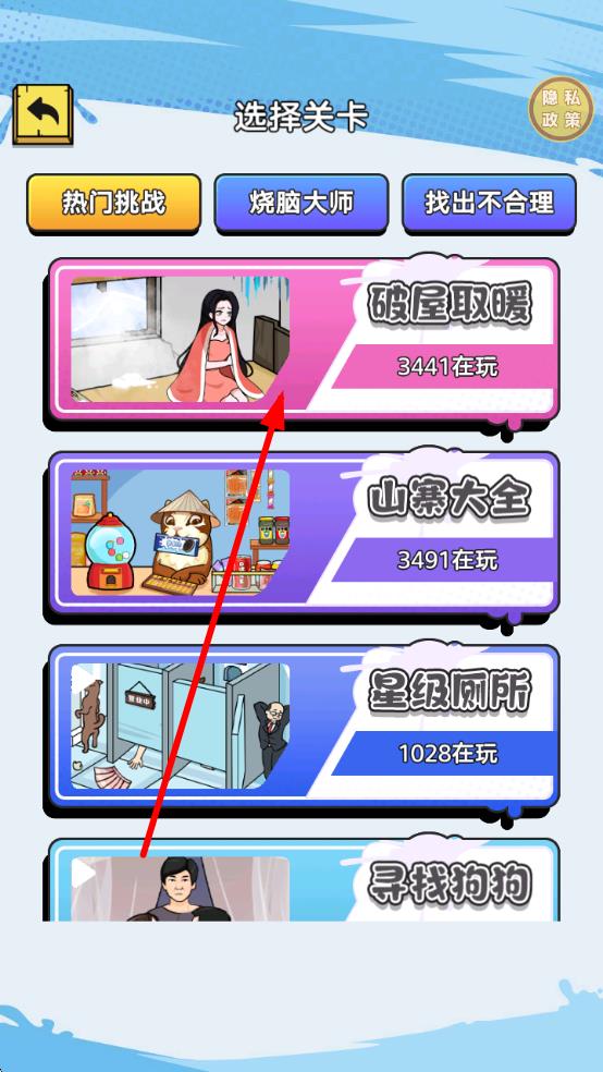 1、进入游戏选择“整蛊关卡”或“解谜模式”,观察场景中人物动作与道具分布,点击可疑物品触发互动剧情。