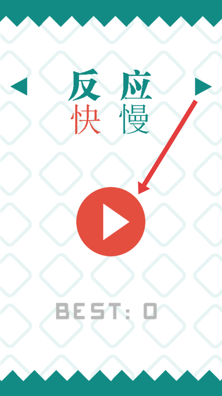 1、进入反应快慢的游戏后,操控者需要点击启动页箭头指向的红色播放按钮,进入反应快慢游戏。