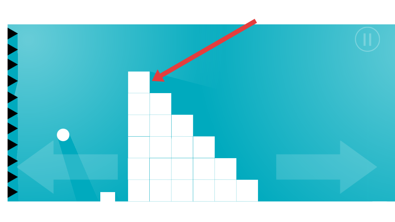 1、在Phases的第一关场景中,操控白球角色,利用左侧箭头图标调整移动方向,使白球滚动并碰撞白色方块结构。