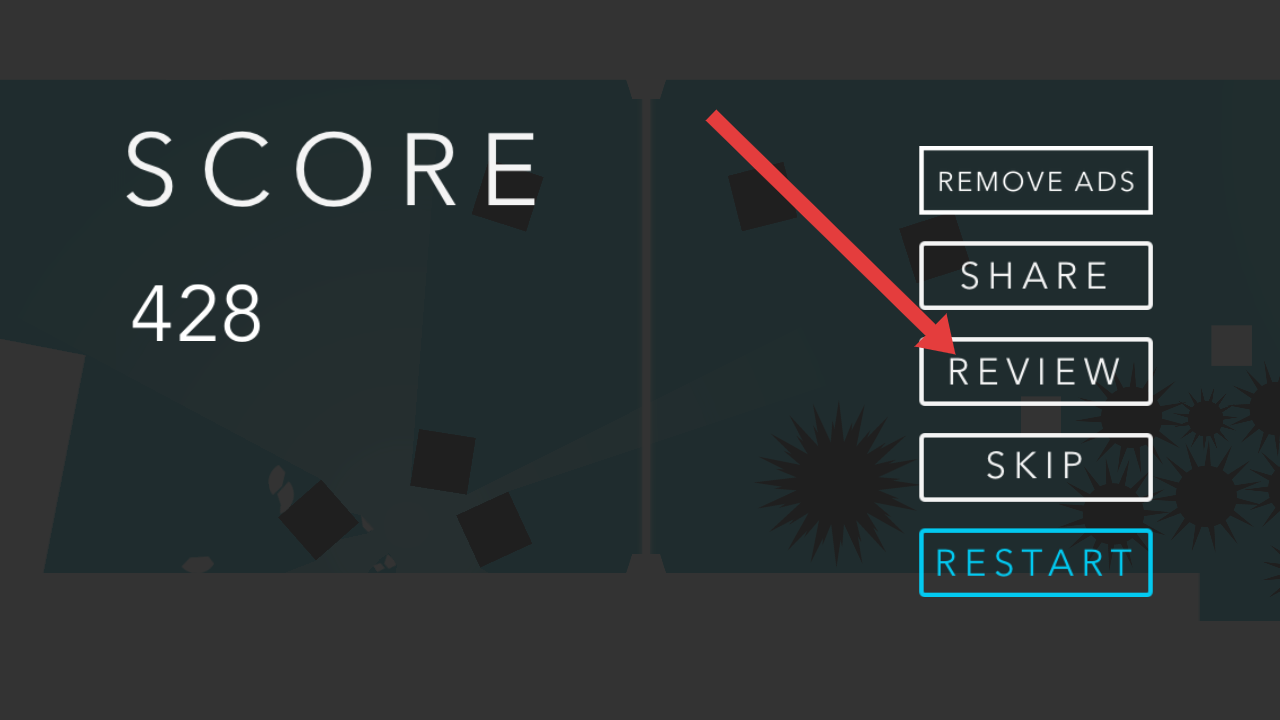 3、完成关卡挑战后,结算界面会显示得分和完成情况,此时点击箭头指向的【REVIEW】按钮,可进入游戏回顾界面。