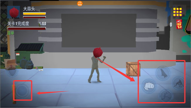 3、左下角摇杆控制角色移动,右下角轮盘控制角色攻击。