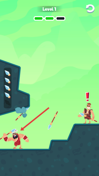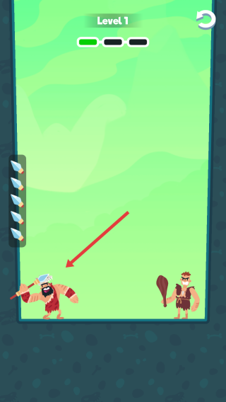1、触发机关:利用左侧装置发射武器(斧、石、矛),攻击下方持斧角色。