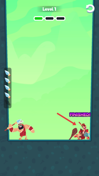 3、完成关卡:持斧角色击败右侧敌人,触发“FINISHED!”结算。