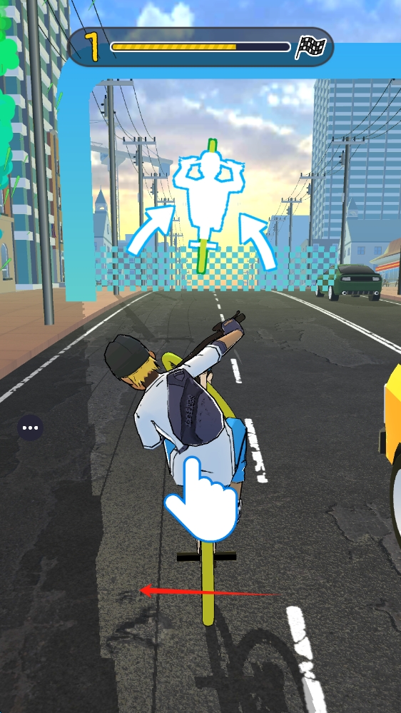 1、点击开始,通过连续成功特技积累能量触发加速,利用连续完成高难度动作触发"特技大师"状态,通过暂停功能调整策略与查看提示。