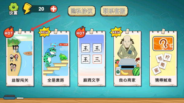1、选择模块:点击主界面“益智闯关”卡片,进入对应关卡。