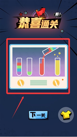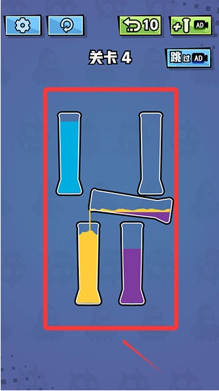 3、所有相同颜色的液体都在同一玻璃杯中,即可过关。