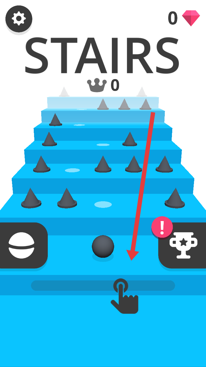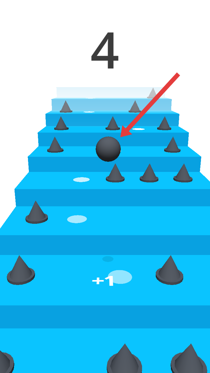 1、小球跳跃操控:操控小球在楼梯间跳跃前进,精准把握跳跃时机与方向,躲避尖刺障碍物,确保小球安全落在楼梯可行区域,延续攀爬进程。