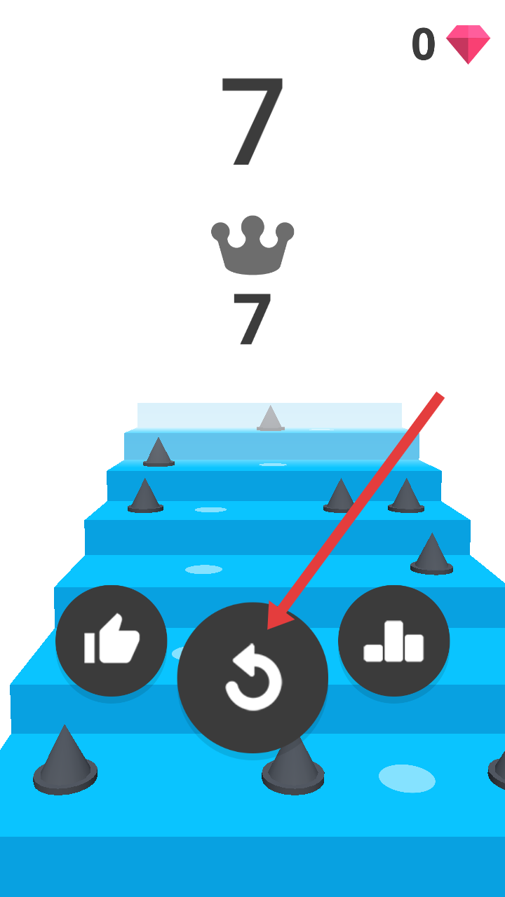 3、挑战结束后,点击箭头指向的循环箭头按钮,重新开启游戏,尝试攀登更高层级,突破分数记录。