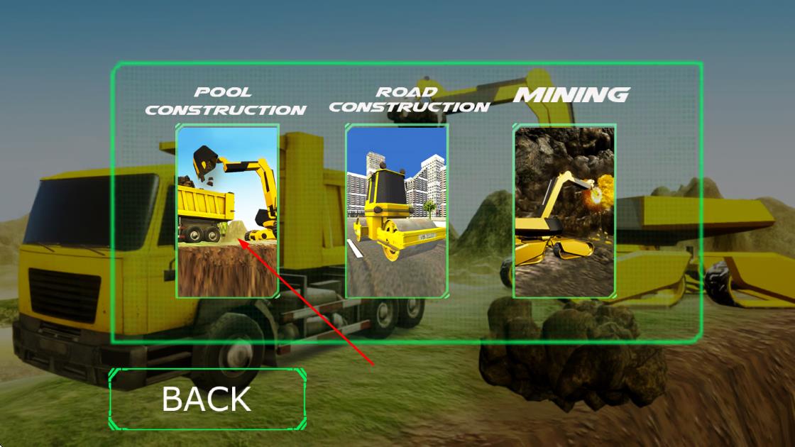 1、进入游戏后在实训关卡选择界面,点击对应任务场景,跟随新手引导熟悉挖掘机基础操控按钮。