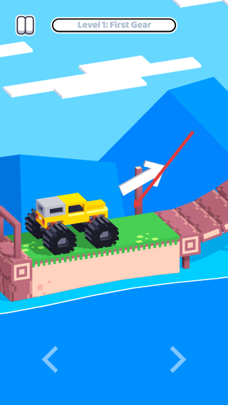 2、驾驶闯关:操控黄色卡车驶过桥梁,完成Level1挑战。
