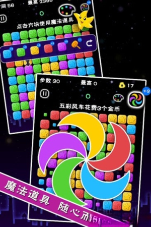 2、游戏创新融入三大魔法道具:色彩刷、元素风车和定向锤,每种道具都能扭转战局,为策略布局提供更多可能。