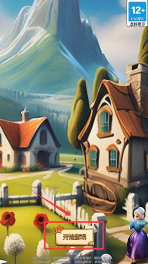 1、点击红框开始游戏按钮,进入卡通乡村冒险。