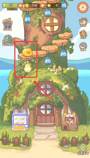 2、点击树屋上的黄色果实,收集目标物品完成实绩。