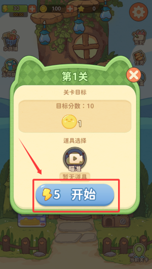 3、点击红框标注的开始按钮,完成第1关10分目标。