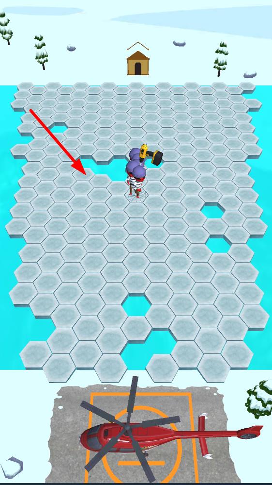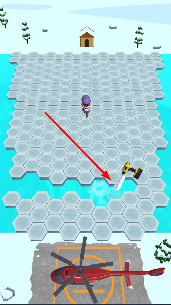 3、道具解谜机制:关卡中随机刷新「冰镐」「诱饵」等道具,冰镐可临时加固冰面,诱饵能吸引敌人注意力,合理使用道具破解复杂地形陷阱。
