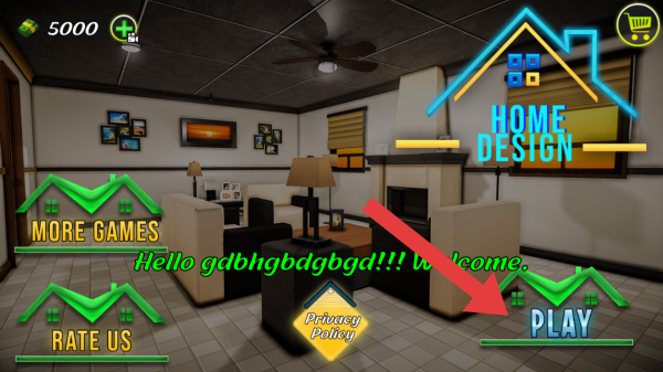 1、左上角显示“5000”(是货币或资源数量)、绿色加号图标,点击【PLAY】方可进入,画面呈现室内客厅场景。