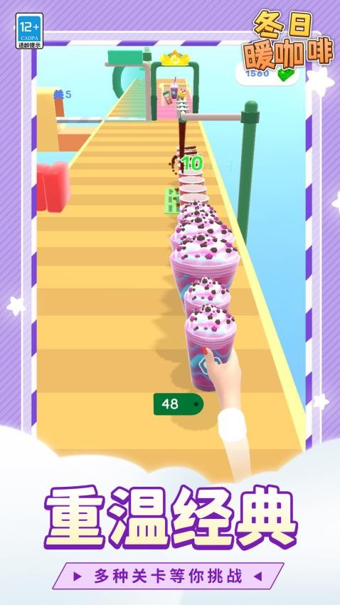 冬日暖咖啡最新版带来轻松愉快的咖啡制作体验,如浓缩咖啡、鲜奶和糖浆等,操作简单直观,滑动即可完成移动和收集,画面风格温暖明亮,咖啡效果逼真诱人,随着游戏推进,可解锁新配方和特殊装饰,适合喜欢休闲跑酷的玩家尝试。
