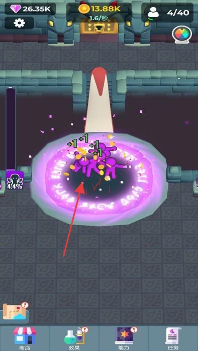 3、完成战斗获取金币、钻石等资源,用于解锁商店物品、升级效果与能力,推进游戏进程。