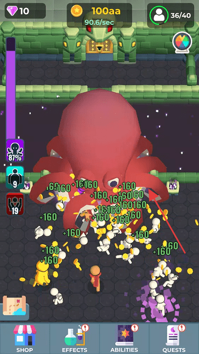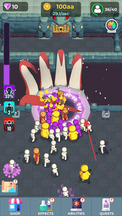 3、强力召唤清场技能:进度条填满后可召唤巨型怪物,对全场追随者发起范围攻击,瞬间收割大量金币,合理把握召唤时机能大幅提升收益效率,为游戏增添策略性爆发点。