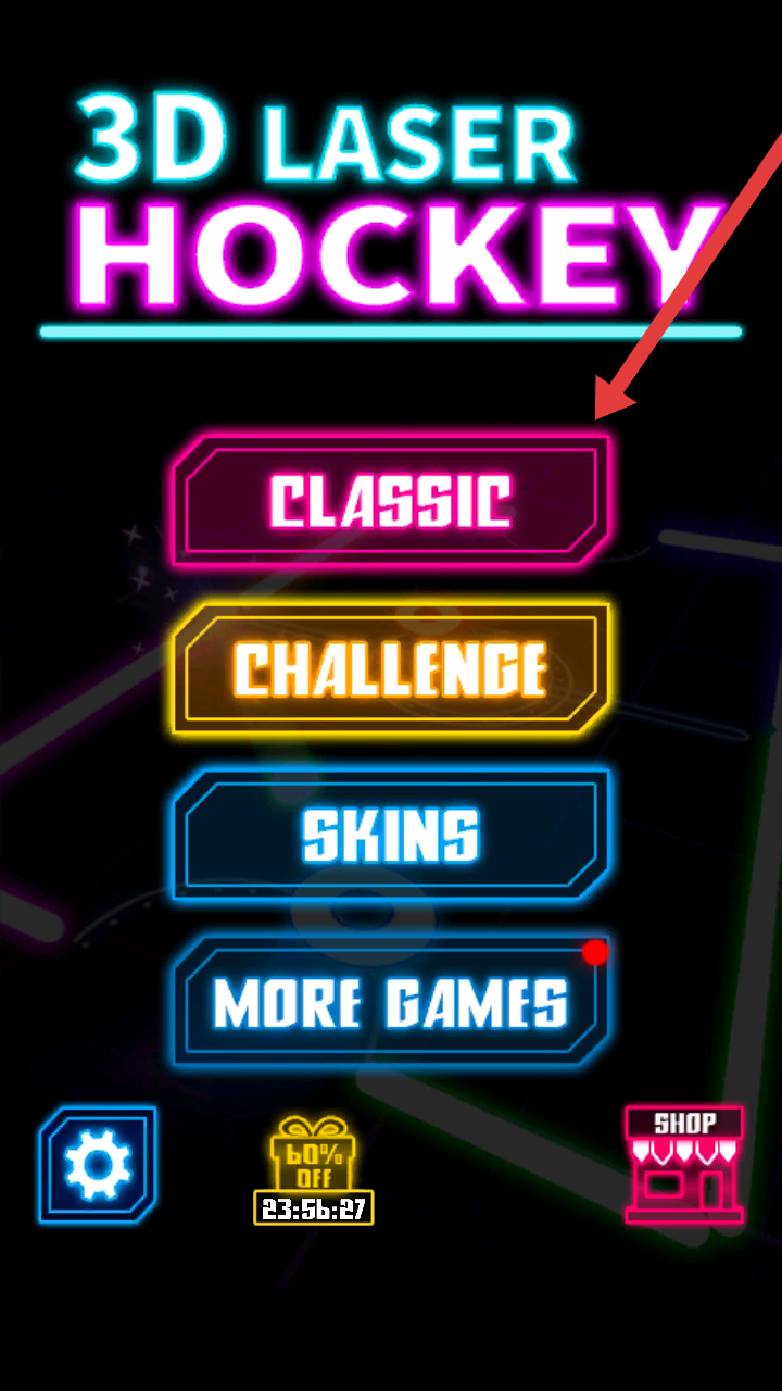 1、等待游戏加载完成,进入主界面后,点击【CLASSIC】(经典模式),开启3D激光曲棍球对战。