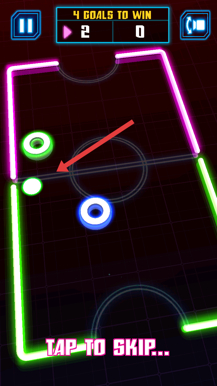 3、游戏内出现“TAPTOSKIP...”提示时,点击屏幕跳过引导,专注对战,争取快速得分取胜。
