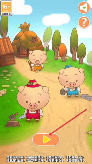 1、启动关卡:点击主界面黄色三角形按钮,进入Lv.1小猪布局关卡。
