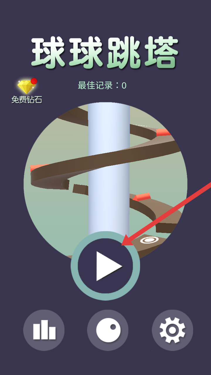 1、打开球球跳塔游戏后,操控者需要点击界面中间的播放按钮,正式的开启螺旋塔闯关之旅。