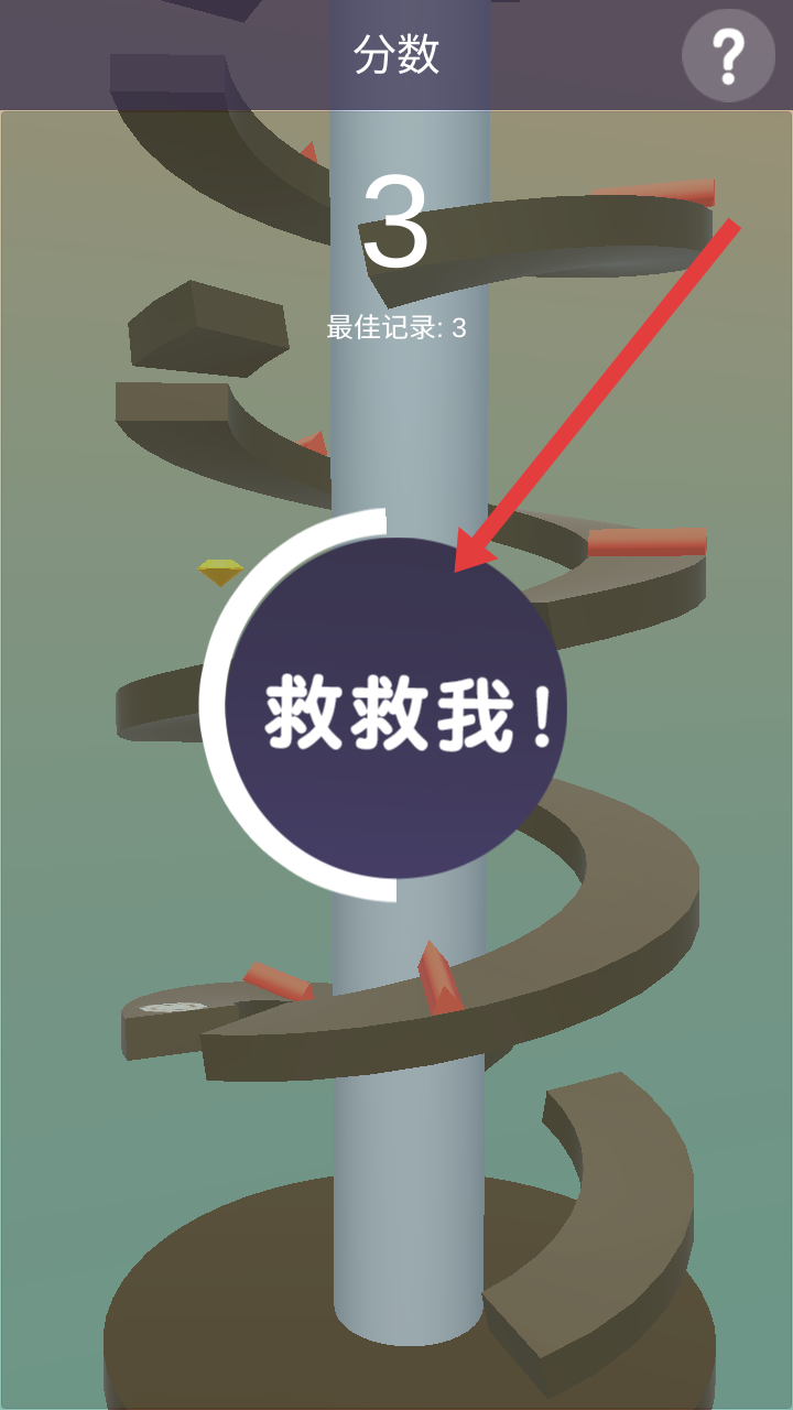 3、当球遇阻弹出【救救我】提示时,突破障碍,争取超越当前最佳记录(3分),推进游戏。