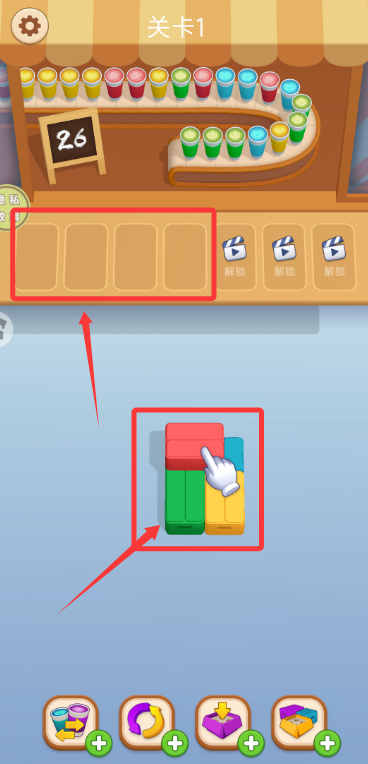1、下载安装好游戏后打开,将下方方块排列到上方空格里。