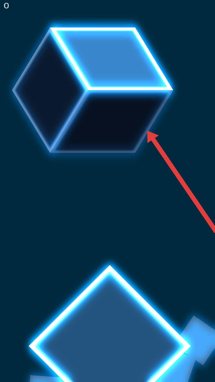 3、持续操作时,上方菱形会变为发光立方体,需精准触控,让立方体与下方菱形适配,推进游戏进程。