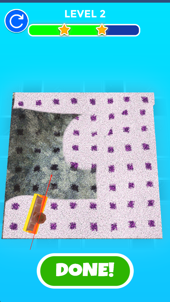 3、多元关卡挑战:涵盖客厅、卧室、餐厅等10余种场景,每种场景的污渍类型、地毯材质各不相同,需灵活切换工具并调整清洁策略。