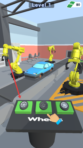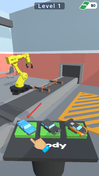2、选择车辆:在工厂内点击蓝色汽车,放置到生产传送带。