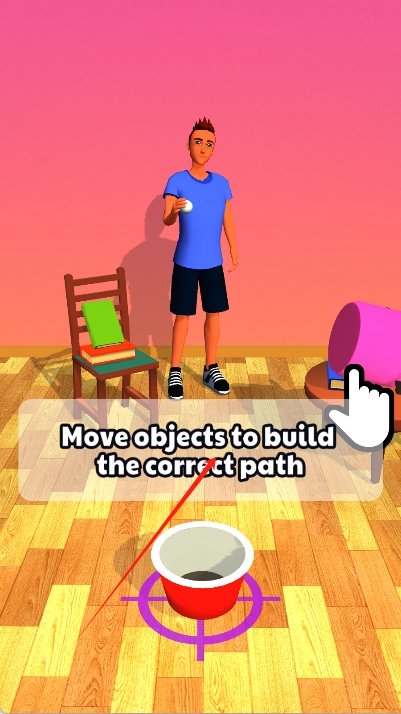 1、面对基础投篮场景,调整力度将小球稳稳投入近处容器,开启投篮挑战之旅。