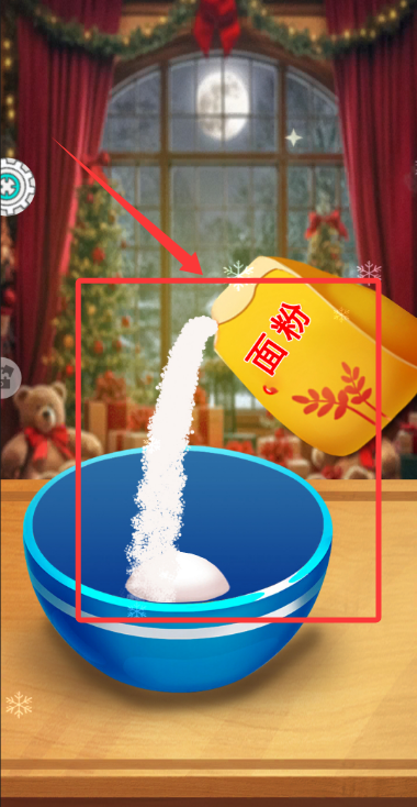 2、在操作环节,把面粉倒入蓝色大碗内,完成食材添加。